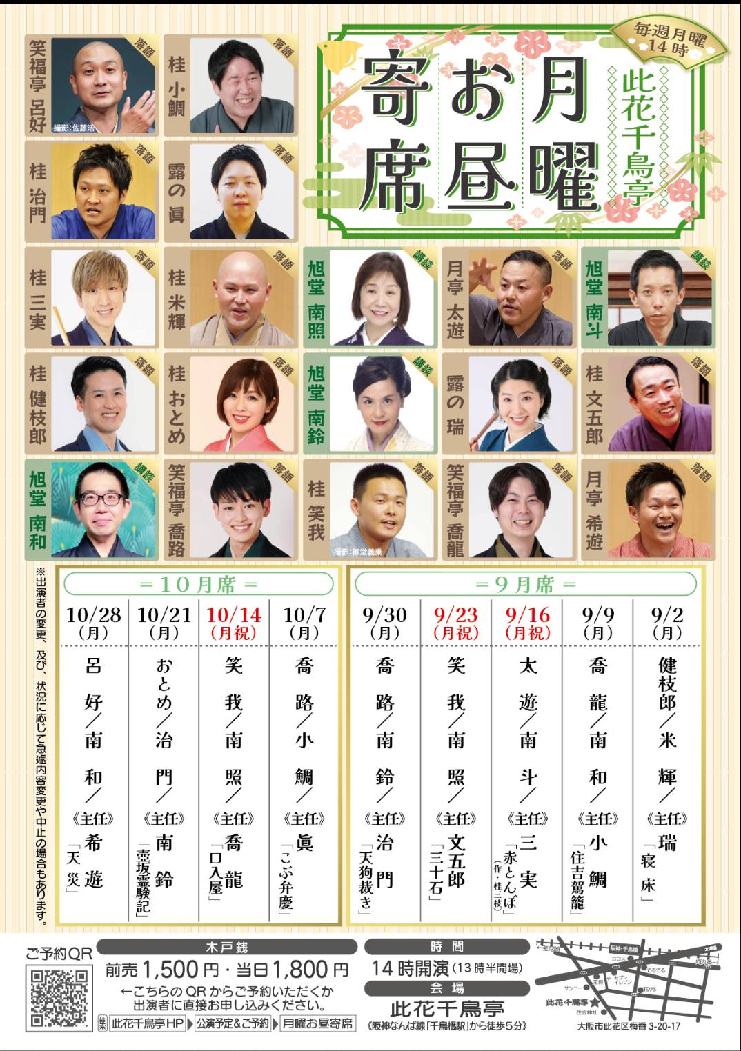 出演情報 月曜お昼寄席9月・10月